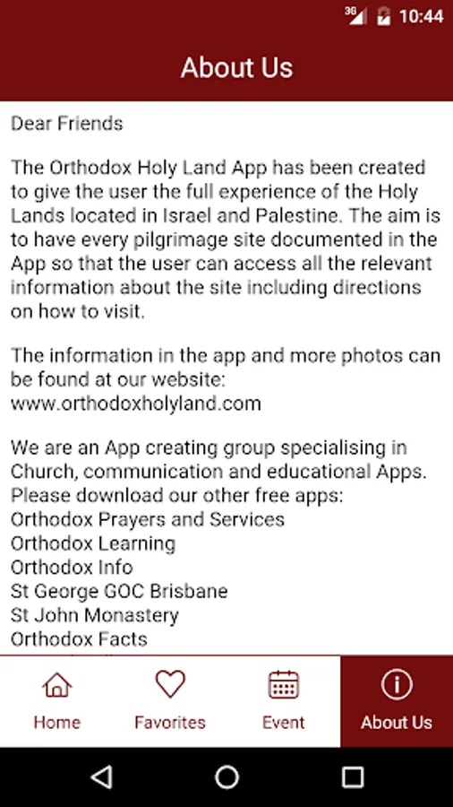 The Orthodox Holy Land App contains photos, information and directions for the Holy sites located in Israel and Palestine. The App takes the user through all of the Holy places that are mentioned in the New and Old Testament plus any other sites that have influenced Christianity.