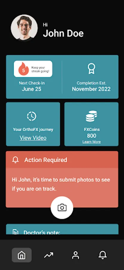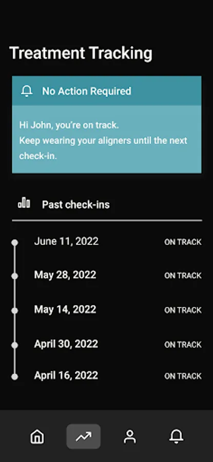 OrthoFX makes it easy for you to check on your clear aligner treatment progress from the comfort of your home with our new FXOnTrack app. It’s almost like having your doctor in your pocket and on your phone! Through scheduled remote check-in's, you’ll always know if you’re on track throughout your teeth straightening treatment. Just send in a few pics and we will do the rest!
