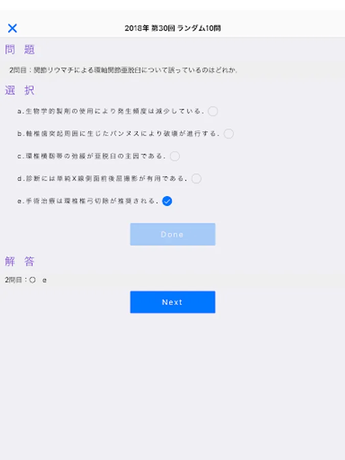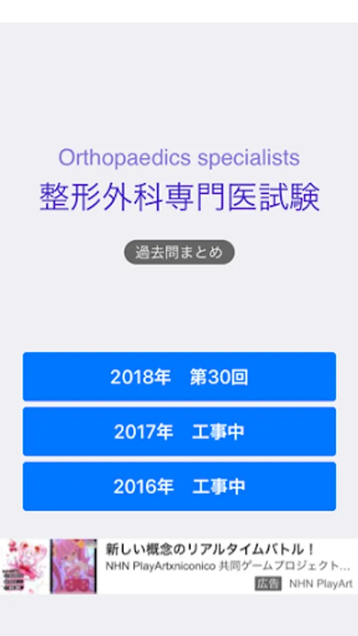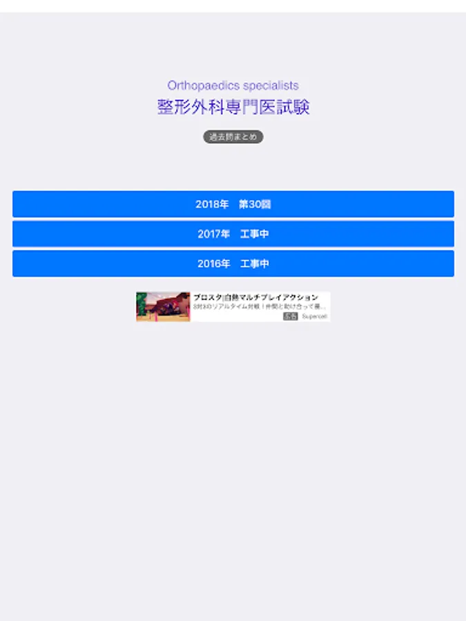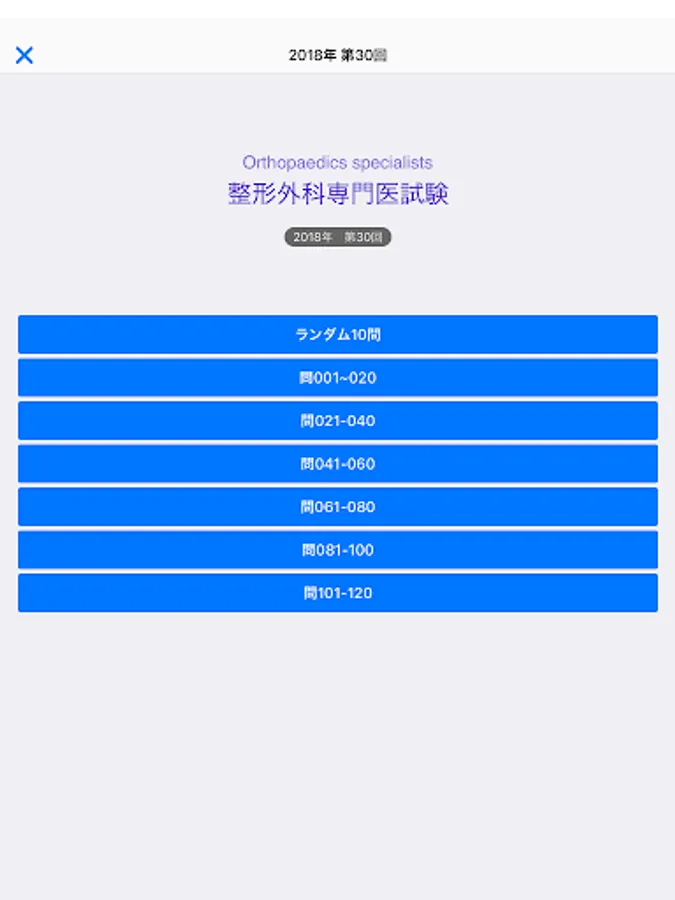 This is a past collection of orthopedic surgeon exam. With random questioning function. It contains 120 questions each year. It is scheduled to be added sequentially from 2018. Commentary is not included.