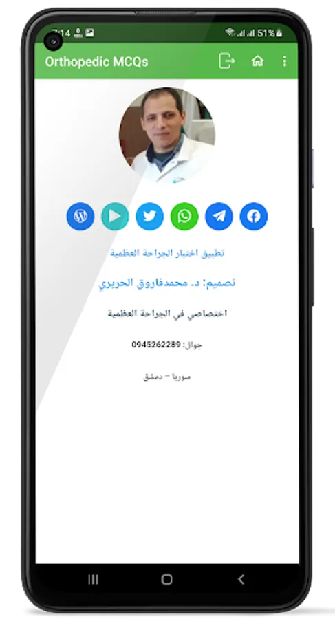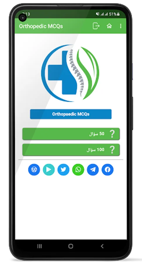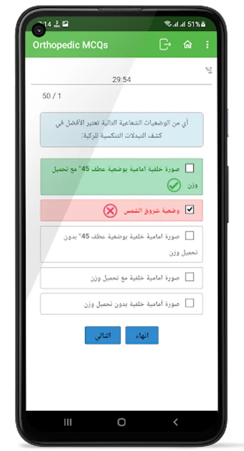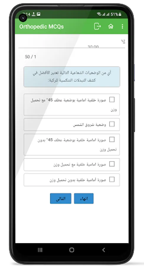 An application that contains many multiple-choice questions in the Arabic language related to orthopedic surgery,
