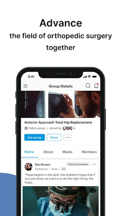 OrthoLoop is designed specifically for the orthopedic surgeon community to facilitate clinical discussions, connect with colleagues, and advance orthopedics through the exchange of ideas, collaboration, and discussion.