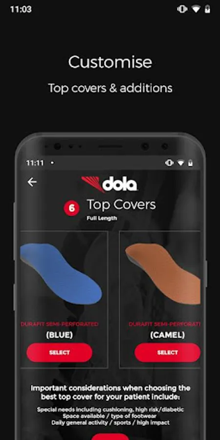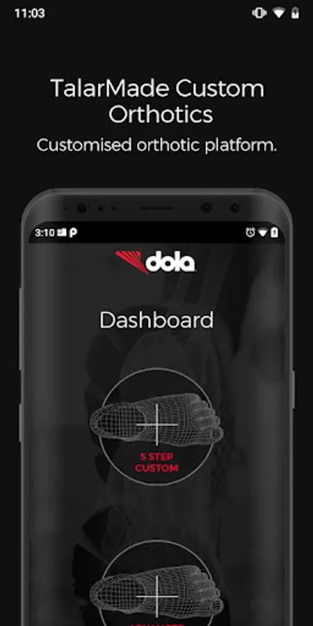 The TalarMade Custom powered by DOLA Orthotics App makes custom foot orthotic prescription easy and gives health practitioners from around the world instant access to the latest in foot orthotics, orthotic materials and orthotic technology.