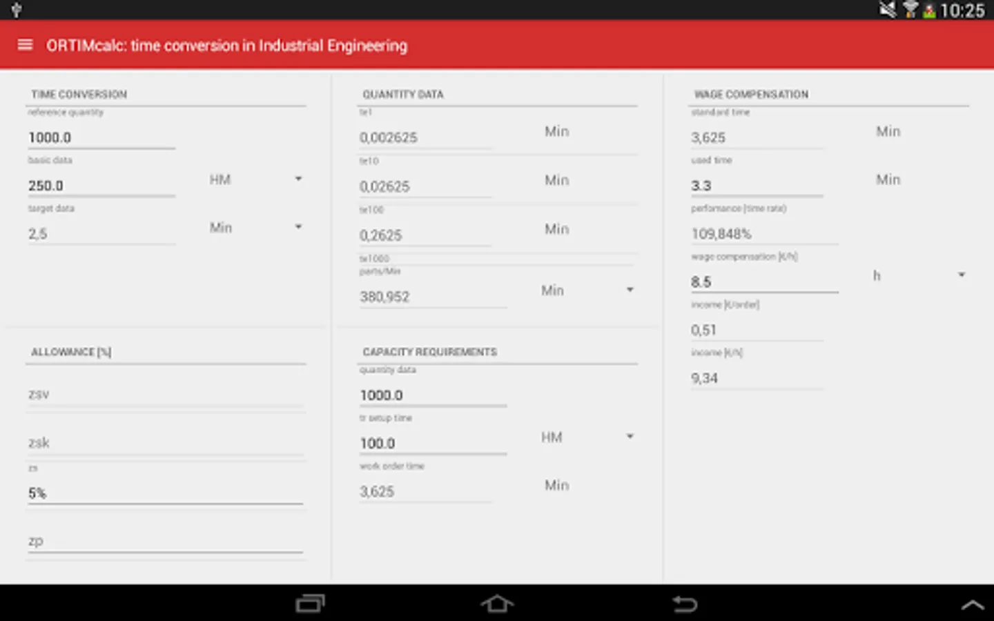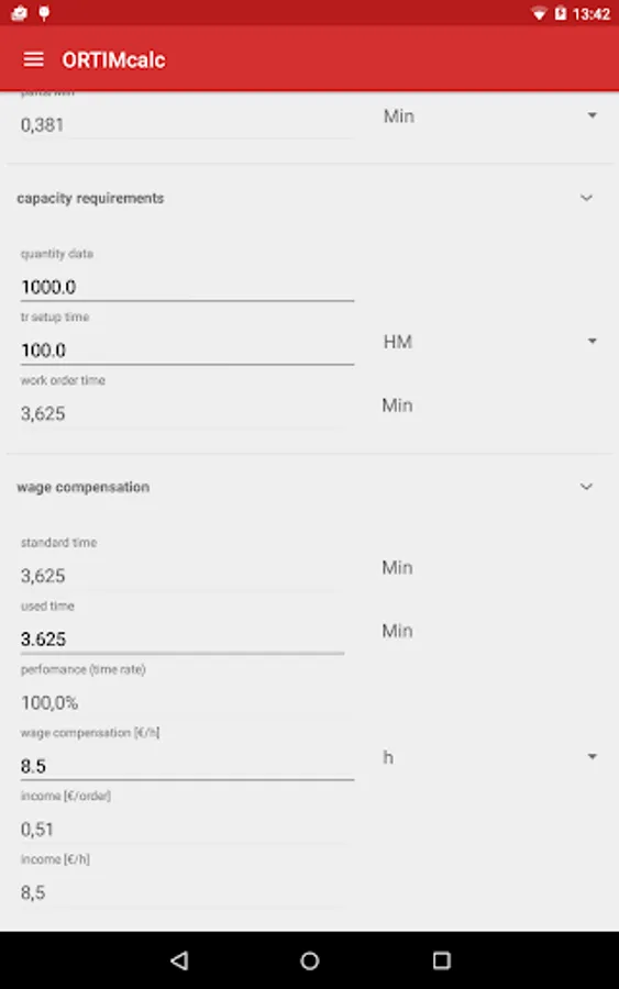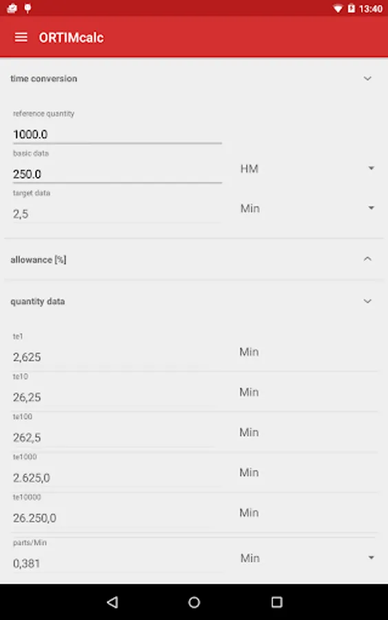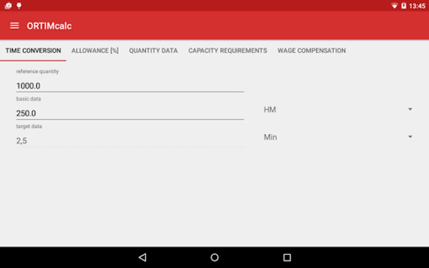 ORTIMcalc supports the conversion of data typically encountered in time management, work scheduling, planning and control. In terms of the methods employed, the conversions and depictions of results are adapted in line with REFA methodology, thus ensuring their compliance with most works agreements.