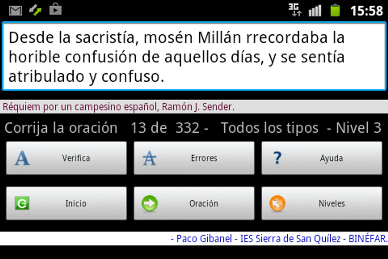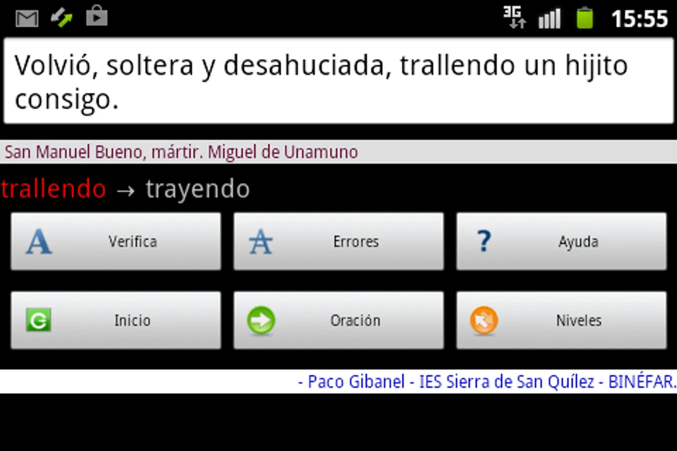 - On the second level are longer sentences, are taken from the works of Spanish and world literature, and have help.