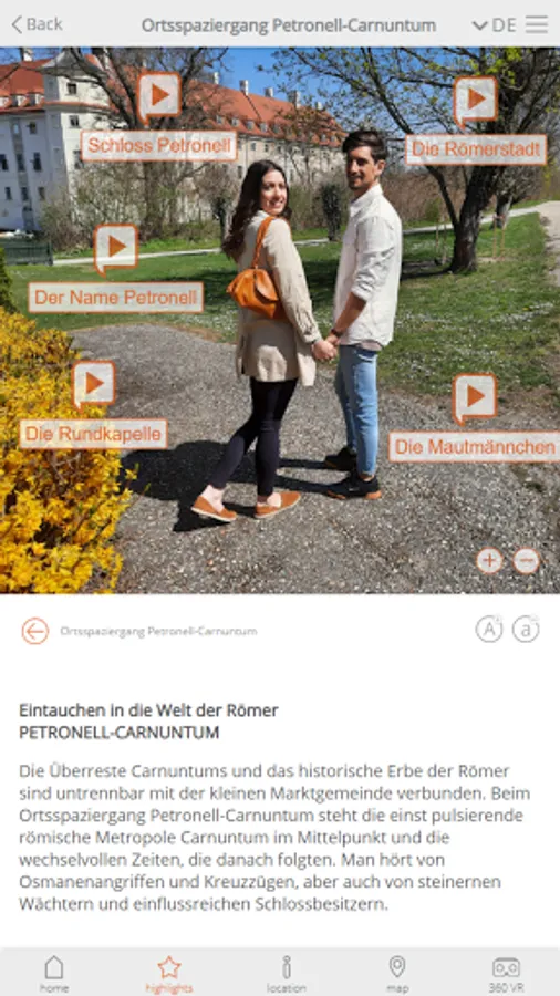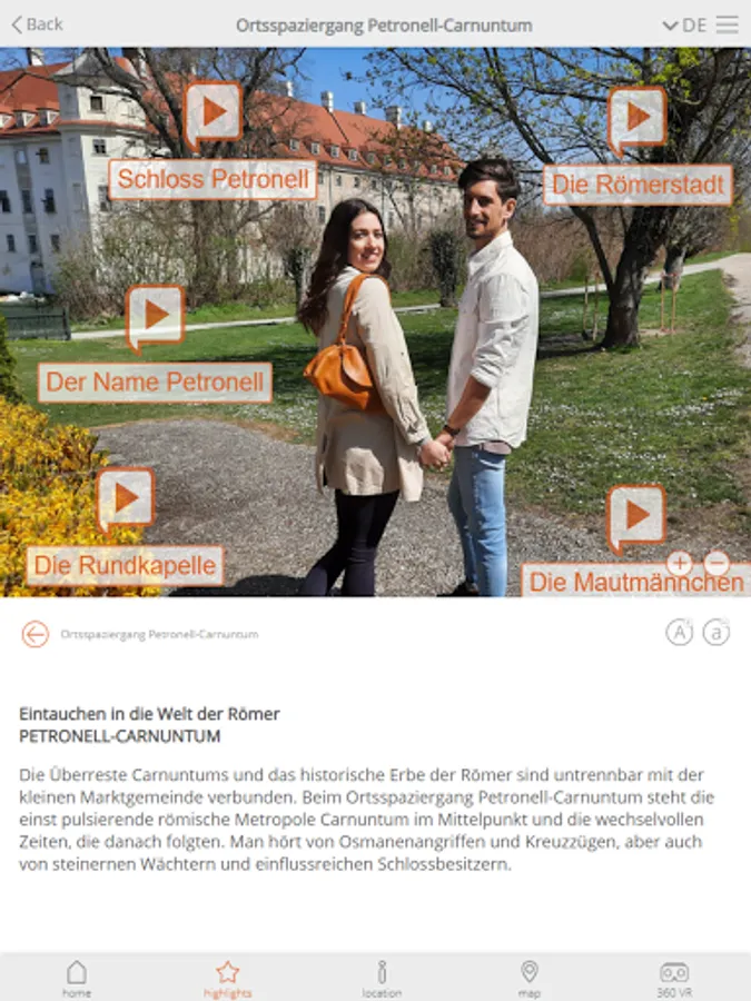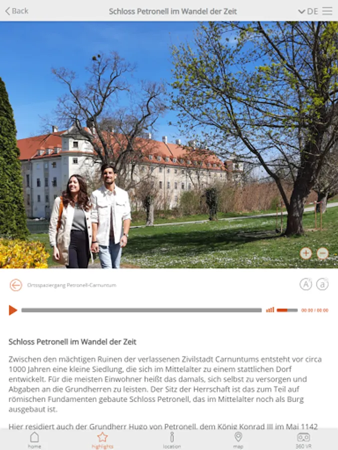Discover exciting stories and fascinating details about Carnuntum and the Marchfeld with the App Local Walks Carnuntum-Marchfeld. 6 walks through the municipalities of Bad Deutsch Altenburg, Bruck a.d. Leitha, Fischamend, Eckartsau, Marchegg and Petronell-Carnuntum, each with a 40-60 minute walk. All contents of the guides are researched on site and prepared into exciting episodes. Download and test now for free!