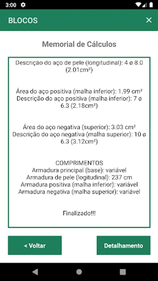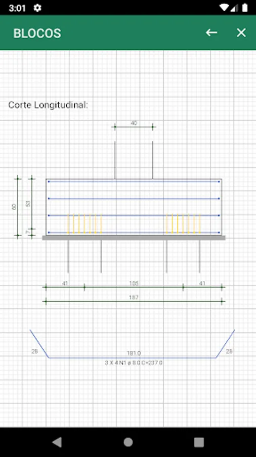 The application performs the dimensioning of the crowning blocks and their respective reinforcements, using the connecting rod method and the theories of Blévot and Fremy.