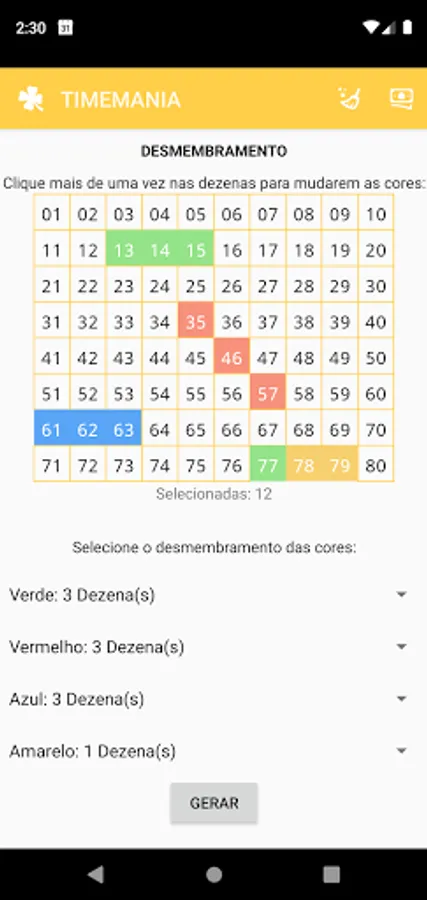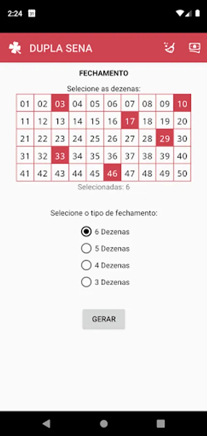 In the premium (paid) version, you will be able to buy each one of the dismemberments individually, with a larger amount of tens. The mega sena, for example, in the premium version you can break up to 42 tens guaranteeing 4 hits. The premium version of the machine, you can break up to 66 tens guaranteeing 3 hits. Below we will list the possible breakdowns with the premium version: