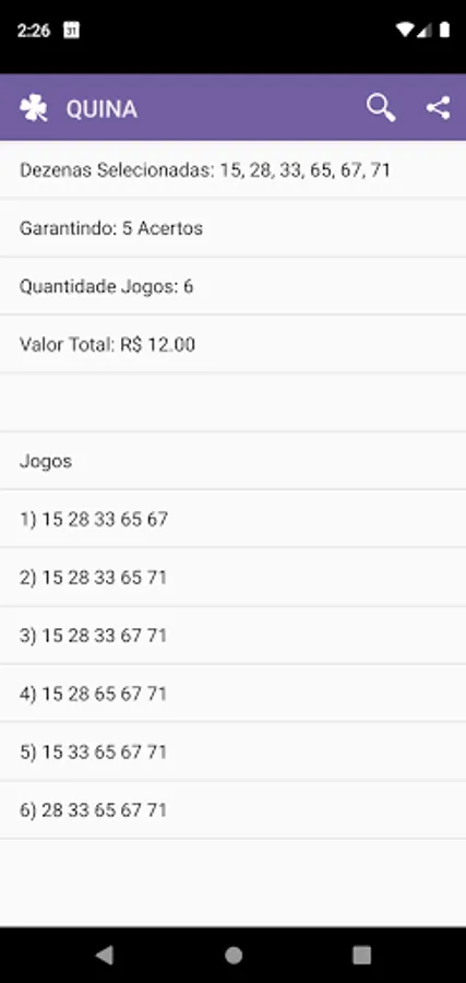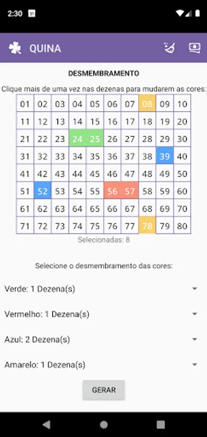 Make dismemberments of Quina with this application. With the free version you will be able to dismember up to seven dozen double sena for free. The application will provide you with the guarantee of correctness if you place a bet in lotteries all over Brazil.