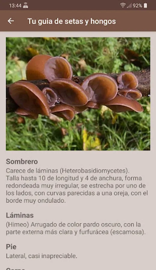 Detailed information on each mushroom and fungus in the guide, with specifications of the same and photographs to better distinguish them.
