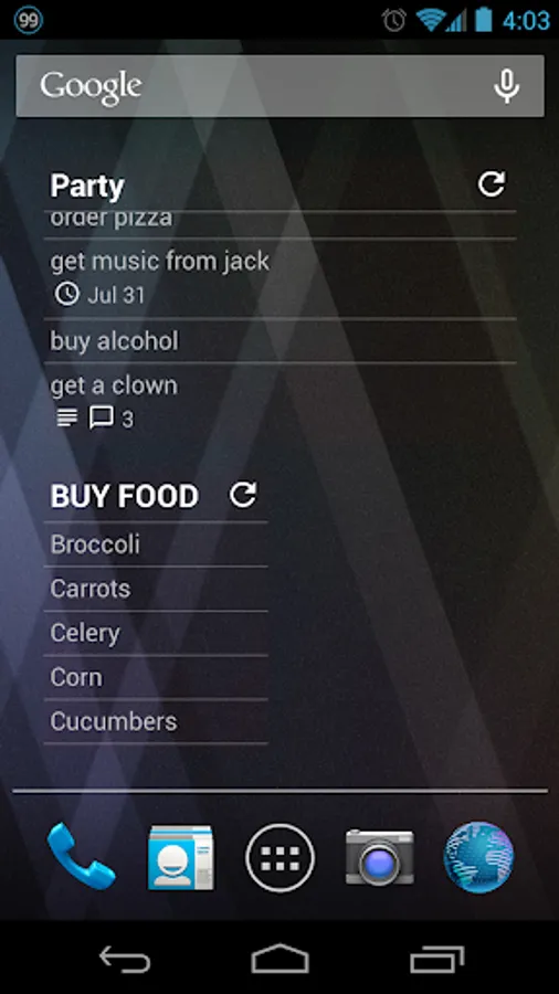 Choose and display lists from your Trello boards on your home screen for a quick glance at your cards.