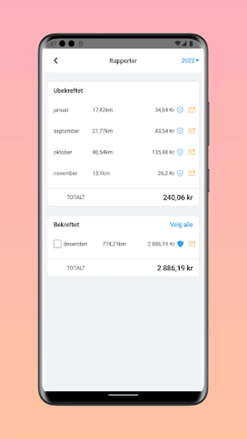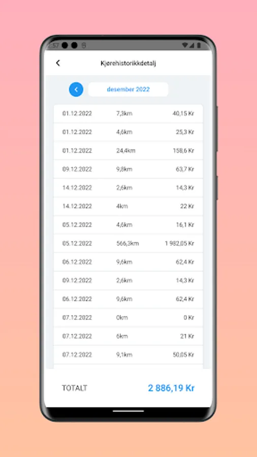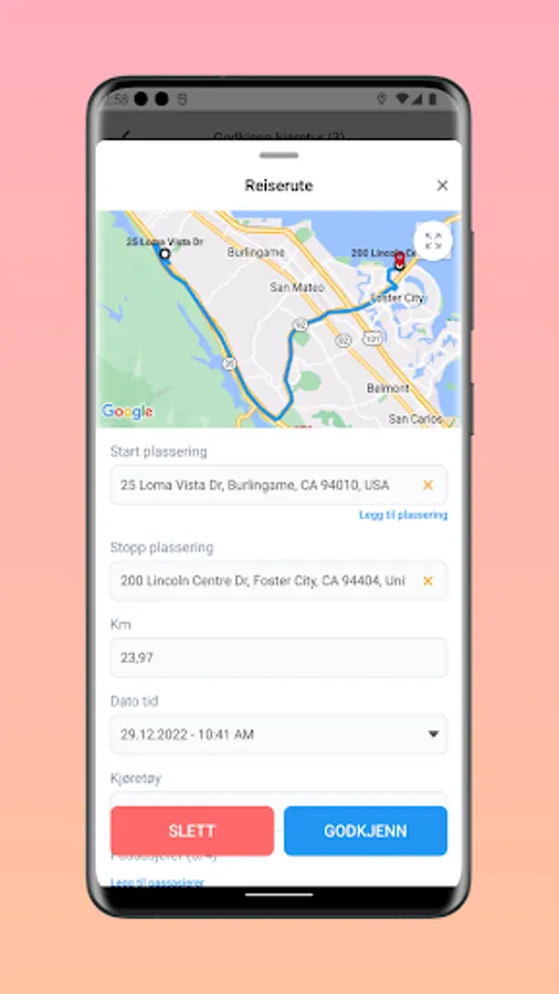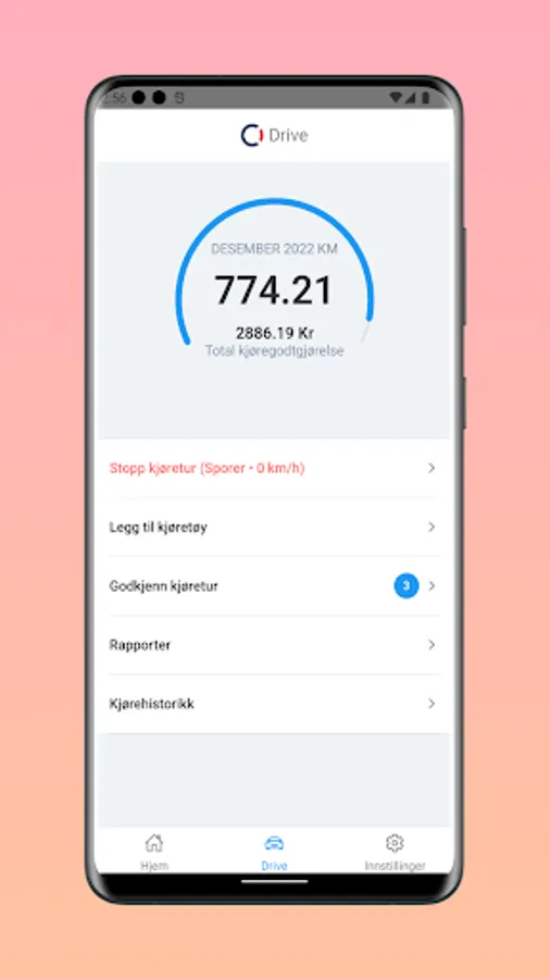 Travel app with driving log that logs your professional journeys and private commuting to and from work.