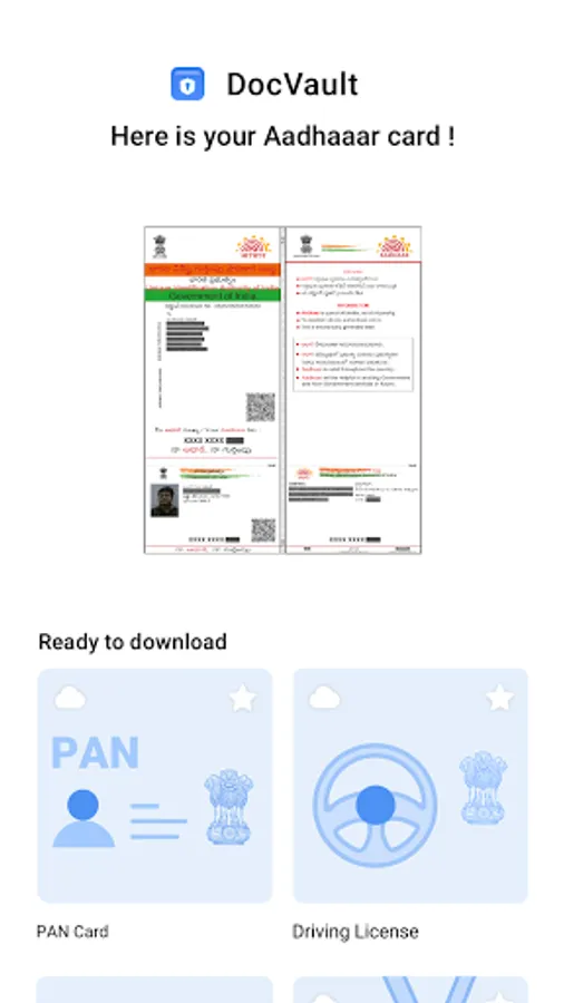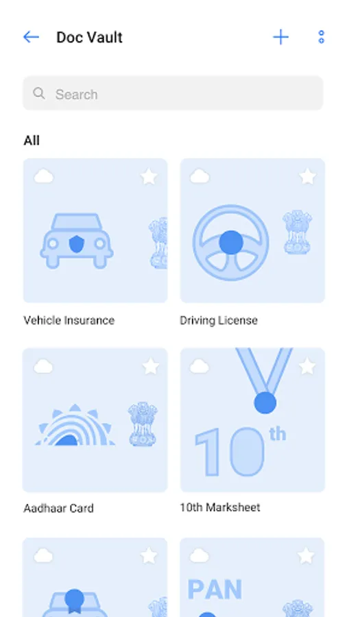 You can also download government issued and verified documents by linking to your “DigiLocker" account. All your documents are secured via password, encrypted and private to you. Enjoy the rich visual experience and enhanced features like creating Categories for documents, adding Multiple-Formats of documents like PDF and Images, linking Fingerprints for easy retrieval, quick access to Favorite documents and much more !!