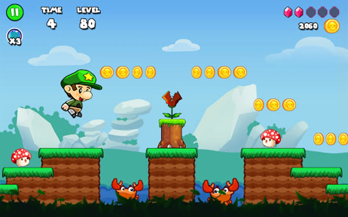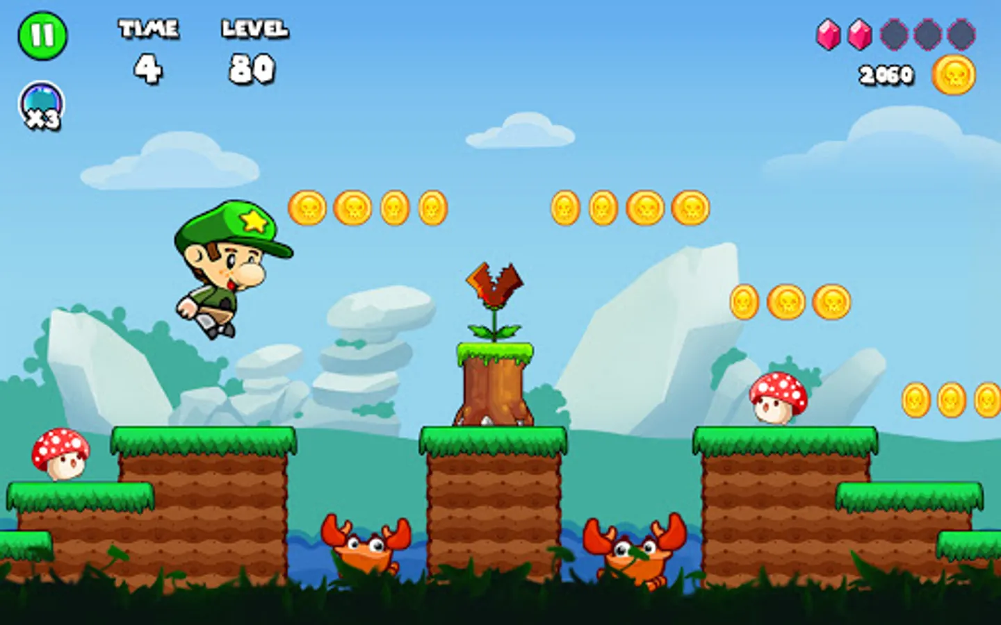 Bob Run - Adventure Rung Game will give you the chance to step back in time to your childhood with the legendary challenge in Mario game: Princess Rescue. The World of this Game - a totally new old-school running game, contains well-designed levels, various enemies, super bosses, simple gameplay, excellent graphics, and soothing music and sounds.