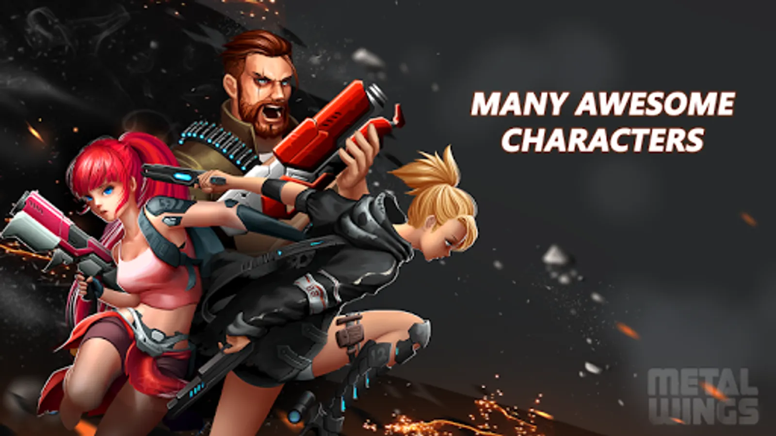 Metal Wings: Elite Force is a 2d side-scroller shooter with classic features from the bests and new unique mechanics. Play as a soldier Contra from the Elite Force Metal Wings of another world with advanced technology, uses the iconic weapons and shoot down anything that harming the peace, from bio-tech soldiers to huges mechanic weapons, plus unique bosses all waiting for you in the battle zone.