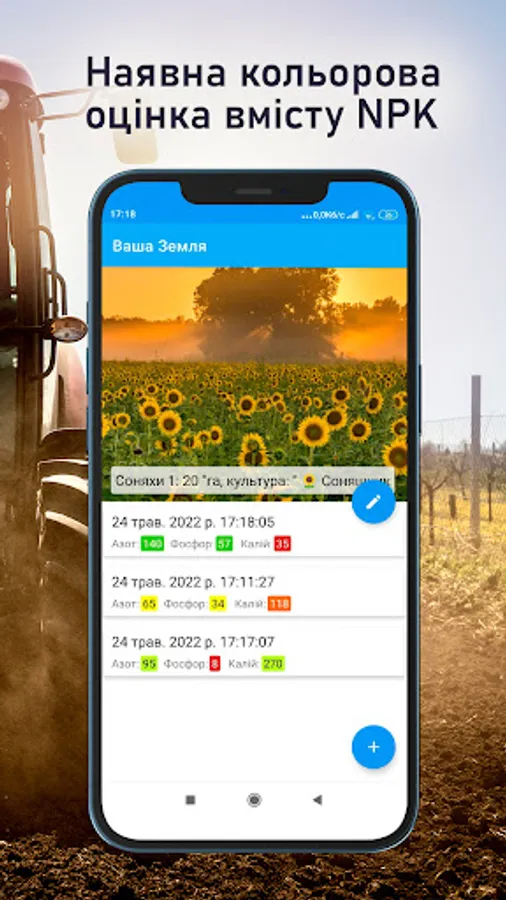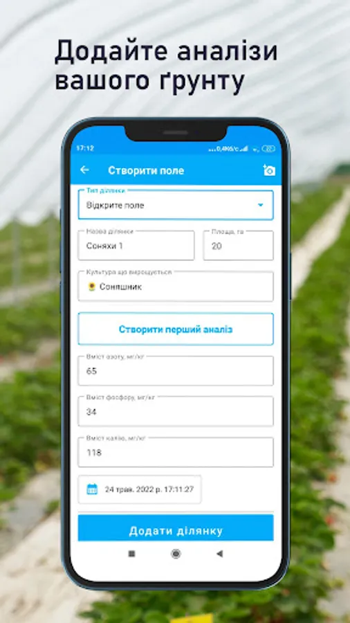 Add an unlimited amount of soil analysis to each field, greenhouse or orchard. All information about the state of the earth will be in your smartphone.