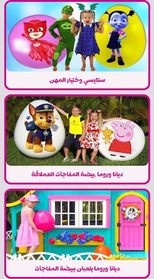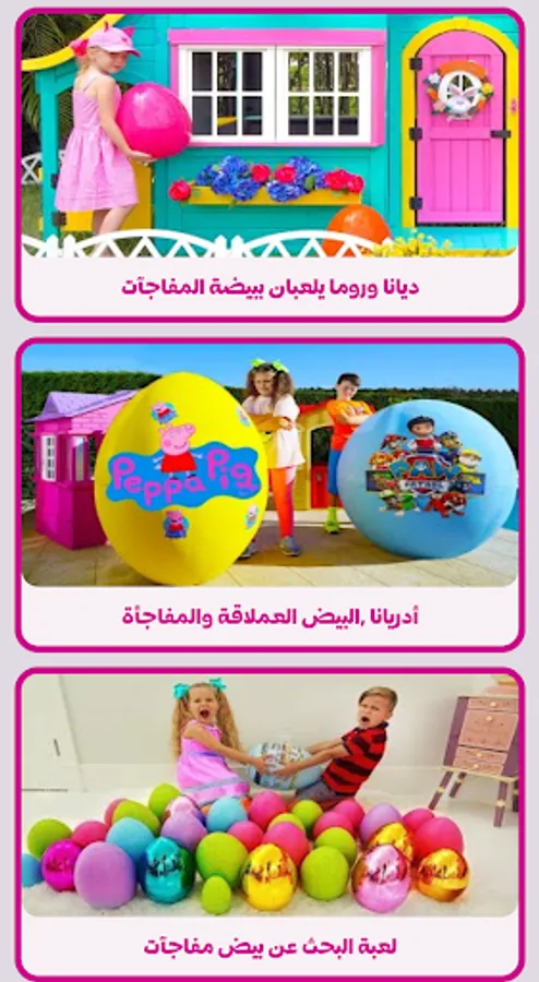 The program consists of entertaining videos of Stacey, Diana, Shiva and others as they open surprise eggs, play with girls' games and expose them to funny situations. The videos are designed in a fun and funny way without the net.