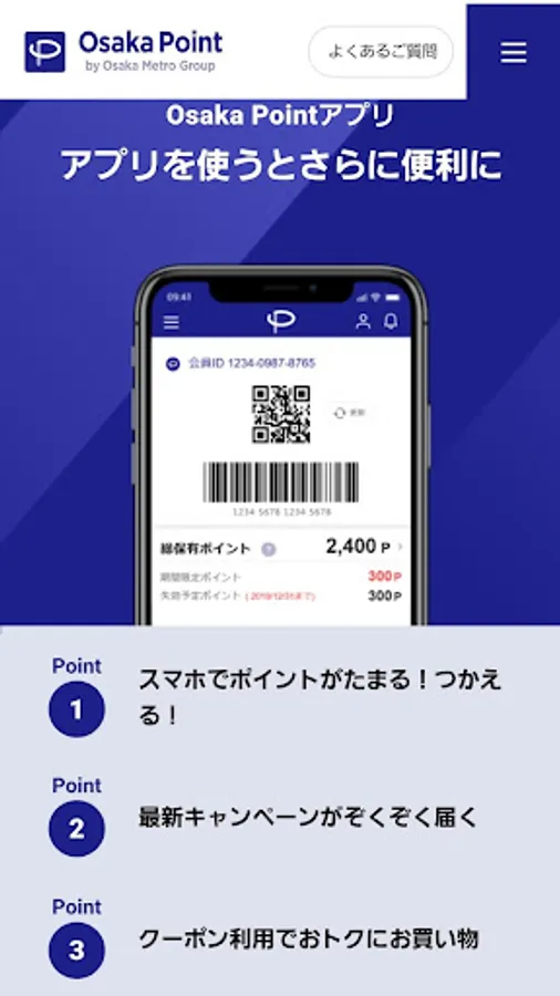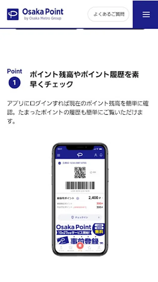 ・ In order to receive services with the "Osaka Point App", you need to register as a member of Osaka Point from the Osaka Point website.