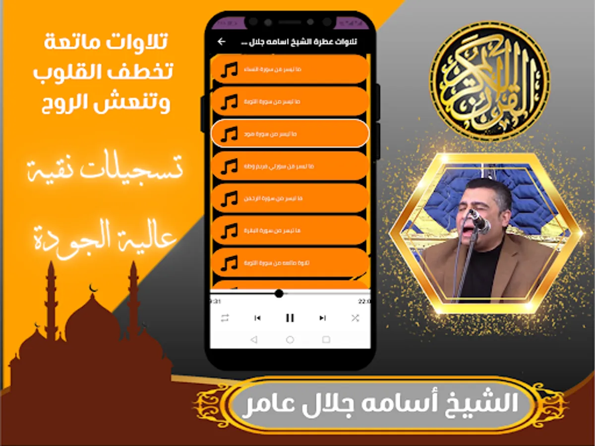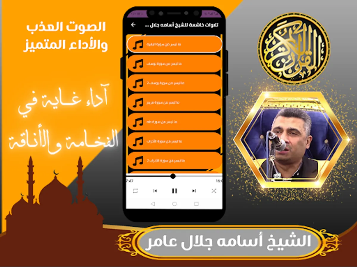 ✅ It is known that Sheikh Osama Jalal Amer has a beautiful and wonderful voice that fills him with tranquility and calmness and takes your heart to another world of peace and psychological comfort. The Quran of Sheikh Osama Jalal Amer without the net must leave a beautiful impact on yourself and the application will help you know the virtue of reciting the Holy Quran over all other words and virtues Listening to the recitation of the Noble Qur’an without the Internet, as well as the preference to continue reciting the Qur’an and listening to the recitation of the Noble Qur’an. We hope that the application of reciting the Holy Qur’an in full, voice without internet, will help you Sheikh Osama Jalal Amer in this and it will help you to download and memorize the Qur’an of Sheikh Osama Jalal Amer without the net