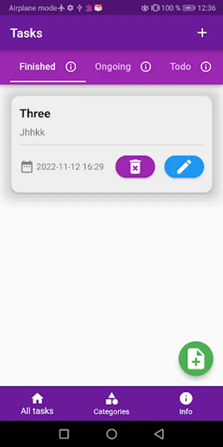 Best todo app to write tasks offline without internet. Categorize your tasks as you want by creating the categories you need.