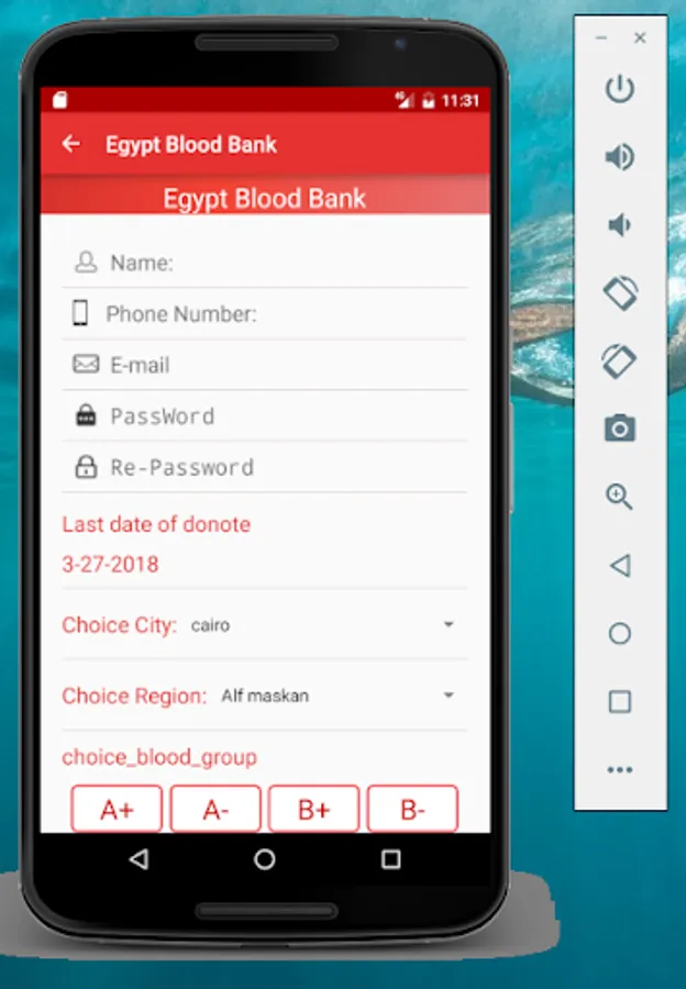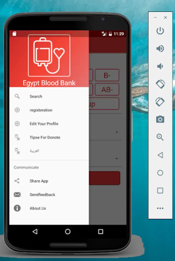 بنك الدم المصري :تطبيق يربط بين المتبرعين والمرضي في انحاء الجمهورية بحيث المتبرع يسجل بيناته الشخصية وتشمل فصيلة الدم والمدينة المتواجد فيها والمريض يبحث بالفصيلة المطلوبة والمدينة الموجود فيها.