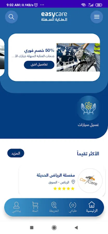 The Easy Care application provides its users with an exceptional and comfortable experience by providing car wash services in multiple ways. It has a large base of the best and latest laundry services in the Kingdom. All you have to do is create an account and choose the appropriate service for your needs, whether by booking an appointment at one of the best laundries or choosing to wash your car in your location, whether you are At work or at home, your needs will be met in record time and a guaranteed and excellent service.