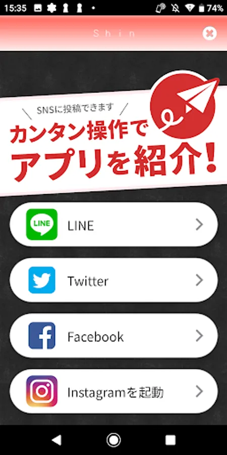 You can introduce the sashimi dining shin app to your friends through SNS.
