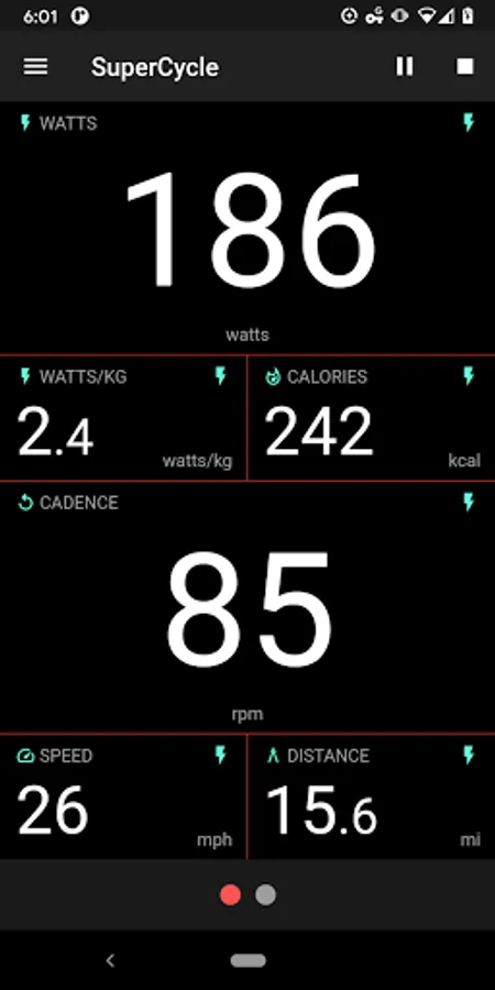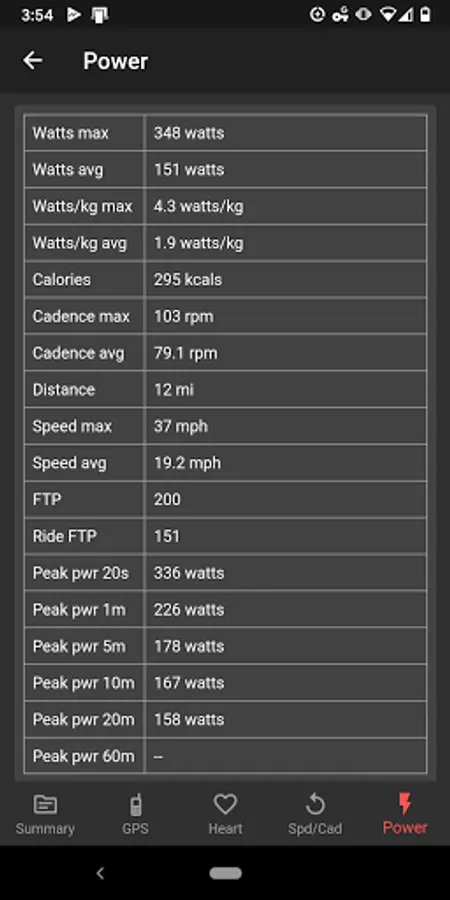 • Statistics include speed, cadence, heart rate, power (watts) and more.