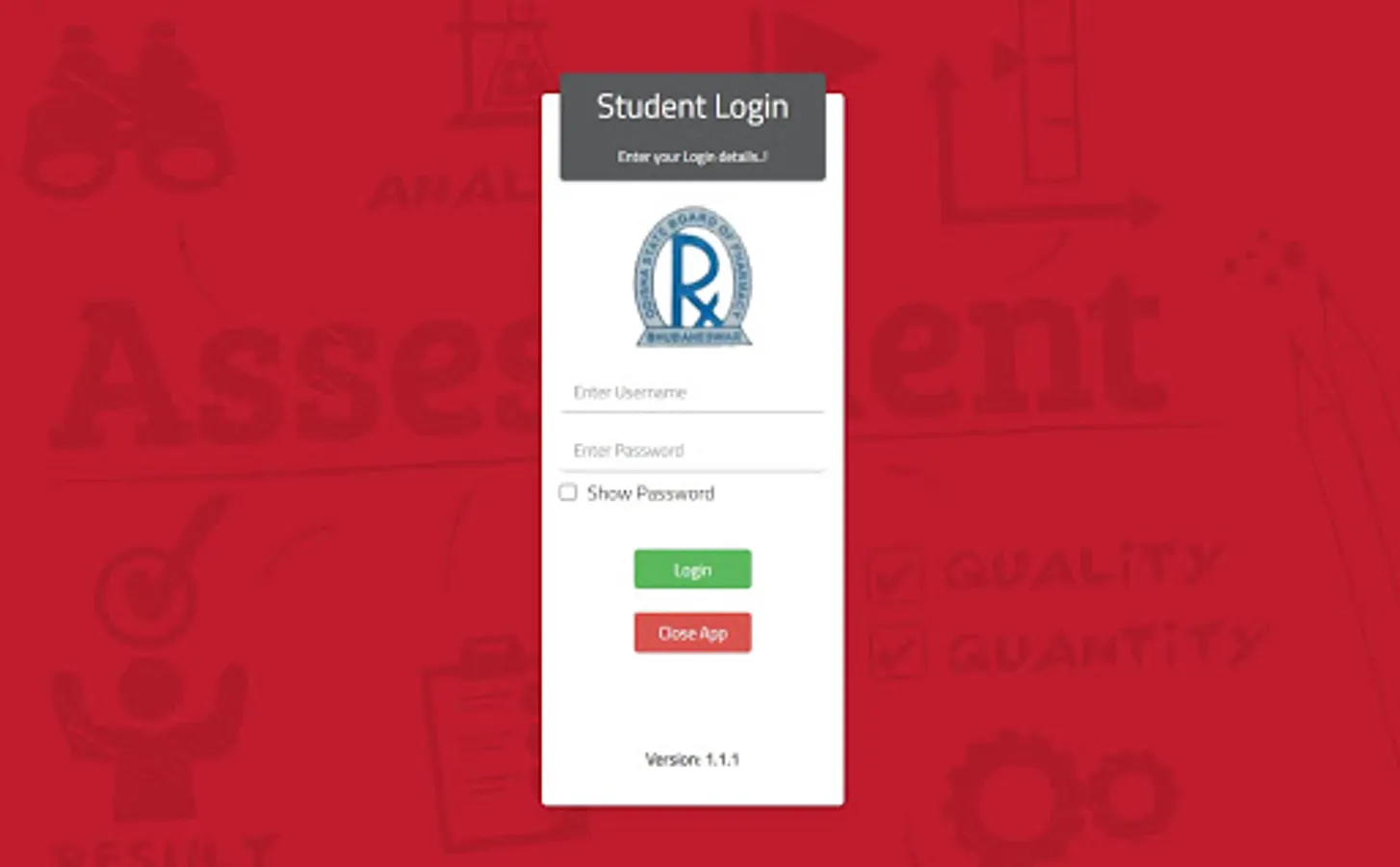 Online examination App for the Odisha State Board of Pharmacy (OSBP) which was constituted by Govt. Of Odisha under regulation 12 of Education Regulation 1981 for Diploma Course in Pharmacy framed under section 10 of the Pharmacy Act 1948.
