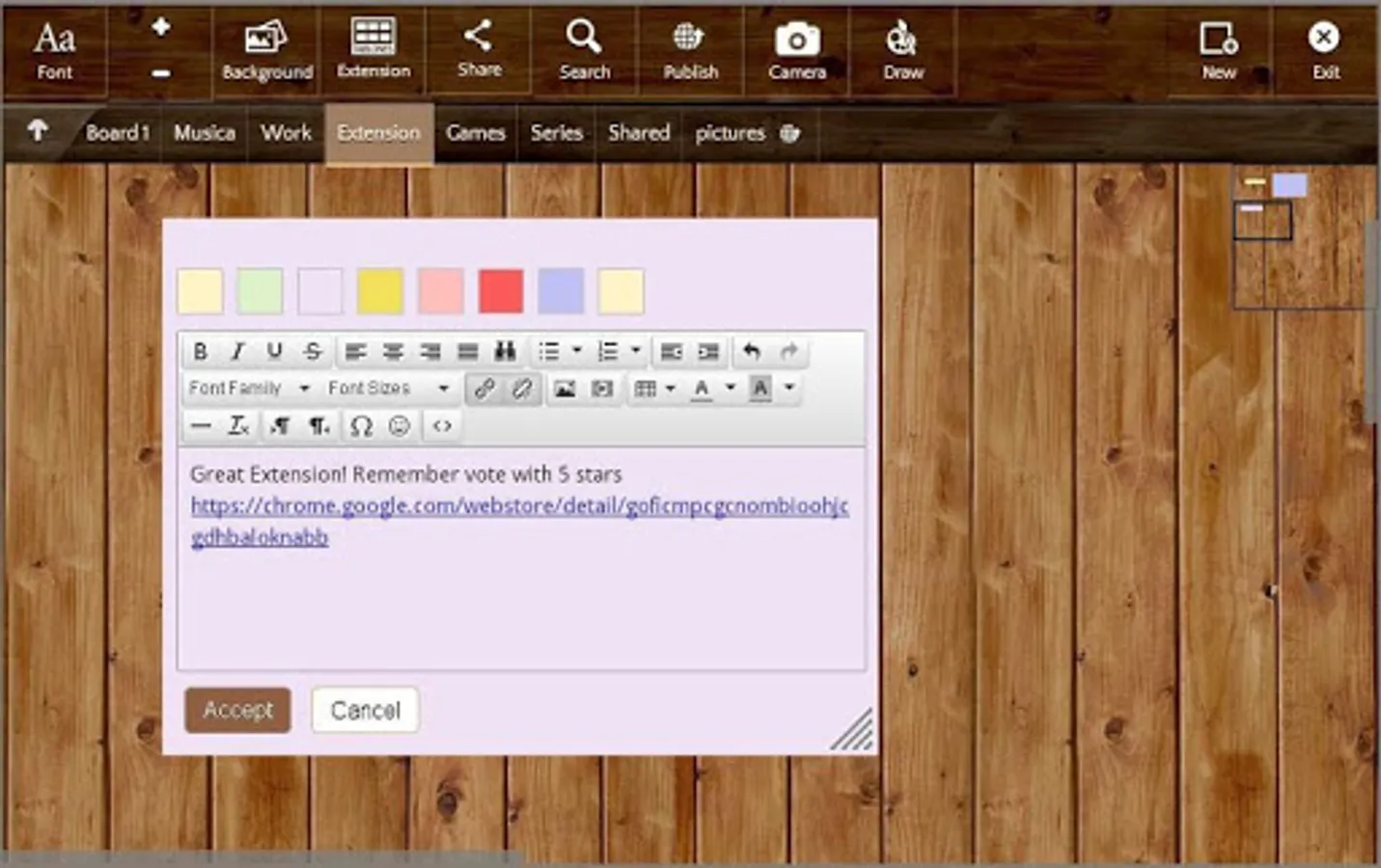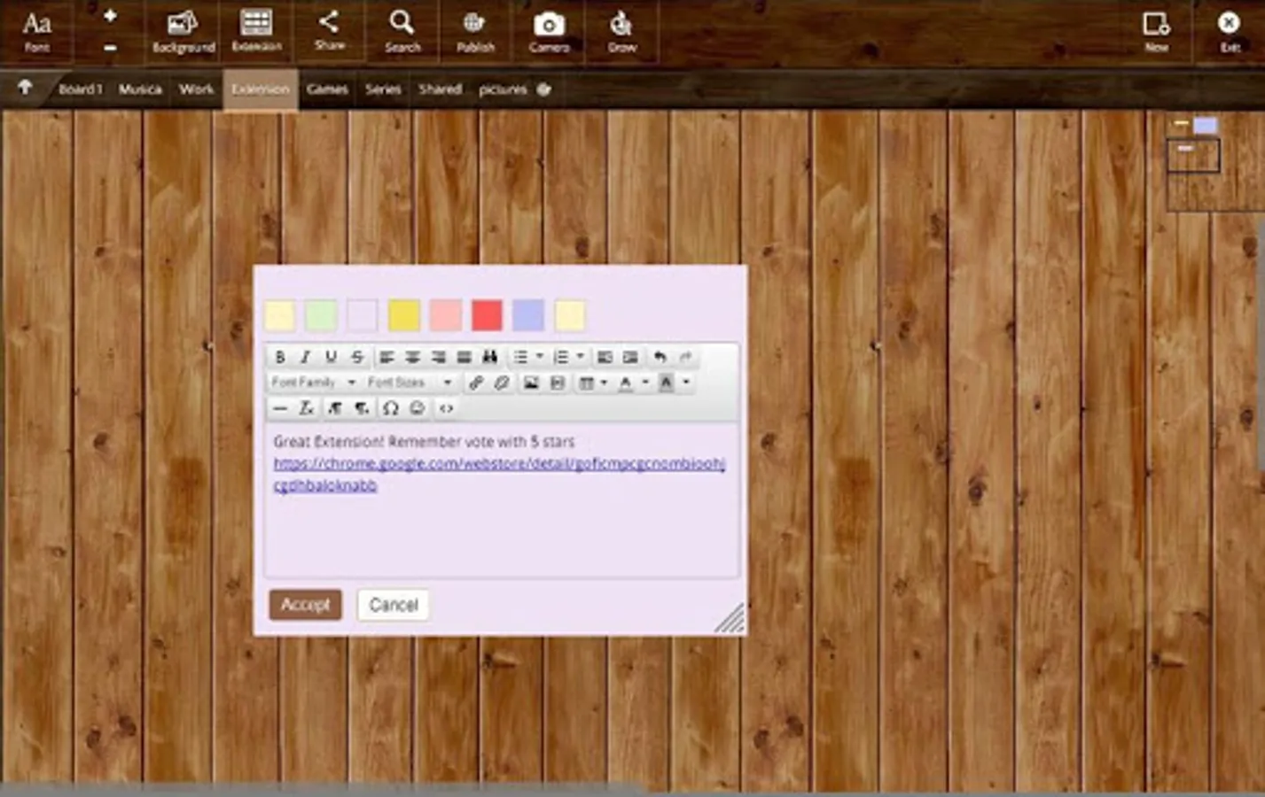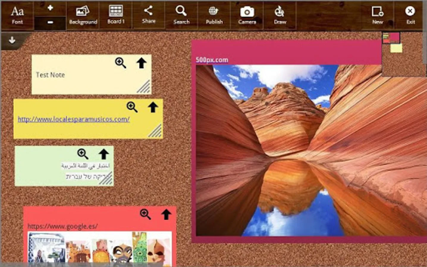 Multiple boards: organize notes in boards, use textures to change the look of the board, move notes between boards.