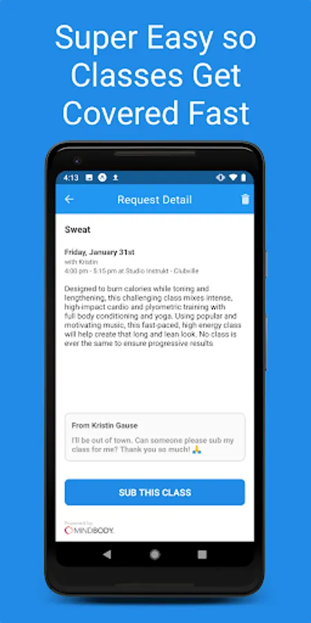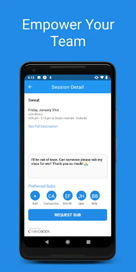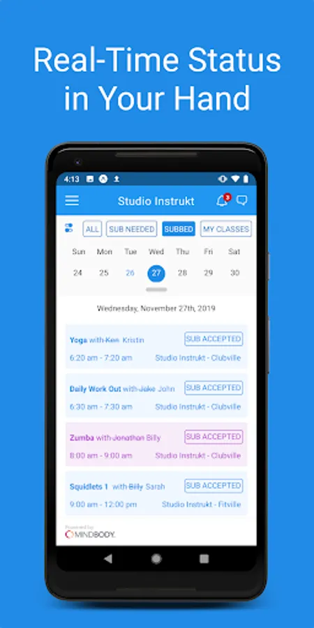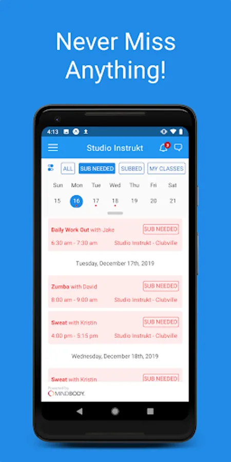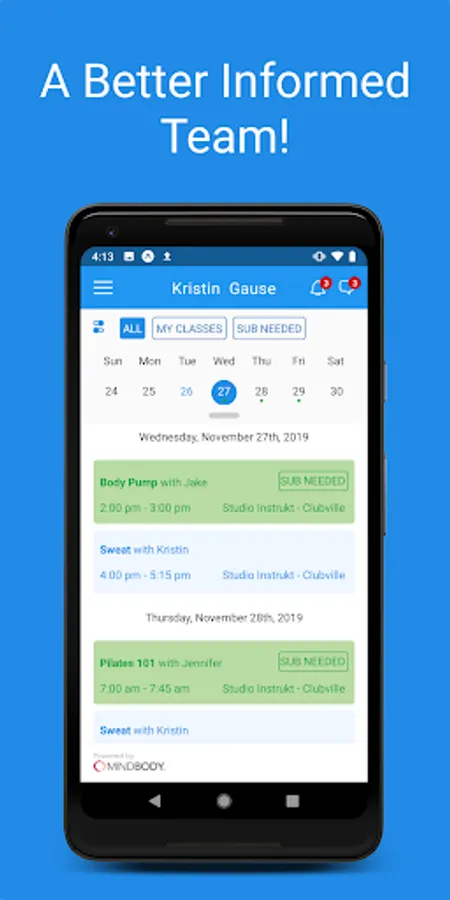 Instrukt seamlessly integrates with your MINDBODY account. Instructor updates are made immediately and without errors. Your subs won't miss a class, your clients won't be surprised, and your staffing information will be up to date. Without all of the hassle.