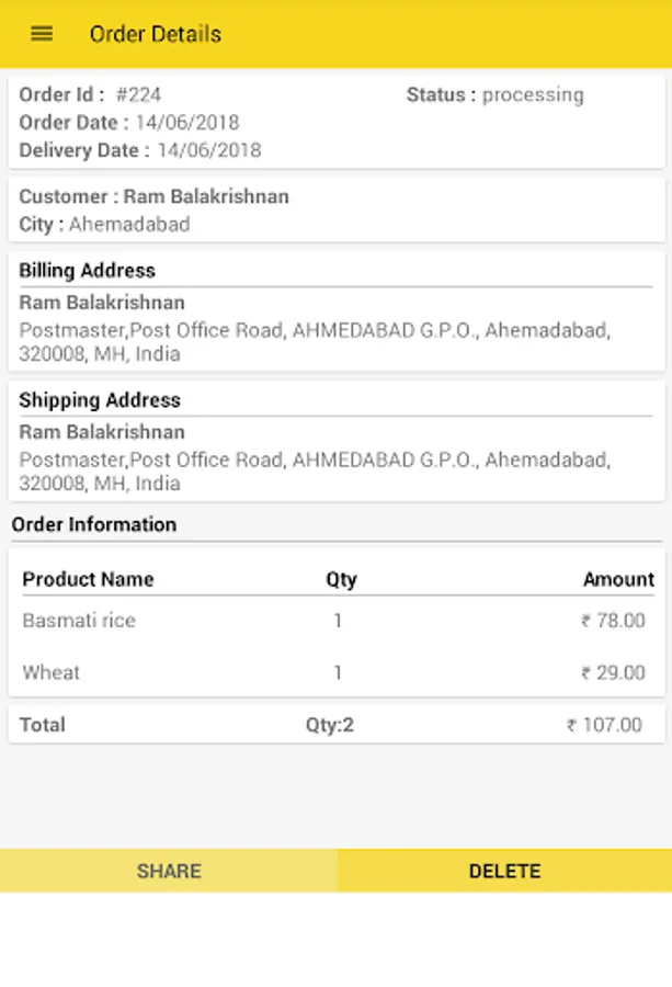 - Share orders by using Whats App, Facebook, Emails, Messages and other social media.