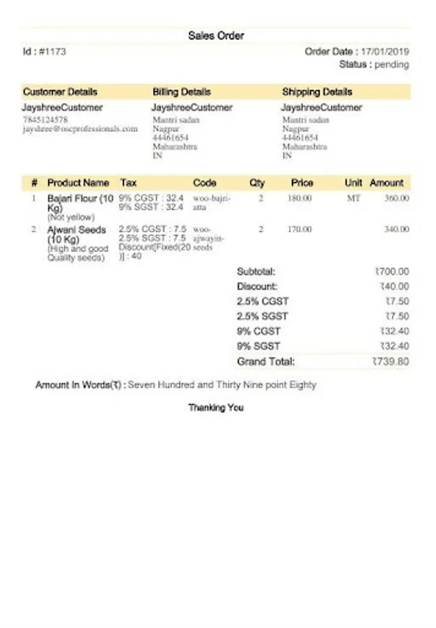 7. Order with GST rates and Discount