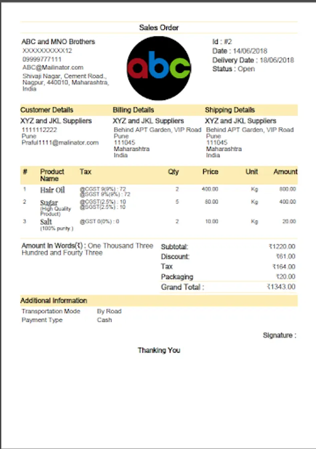 6. Add order total rows like Shipping,Tax,Packing.
