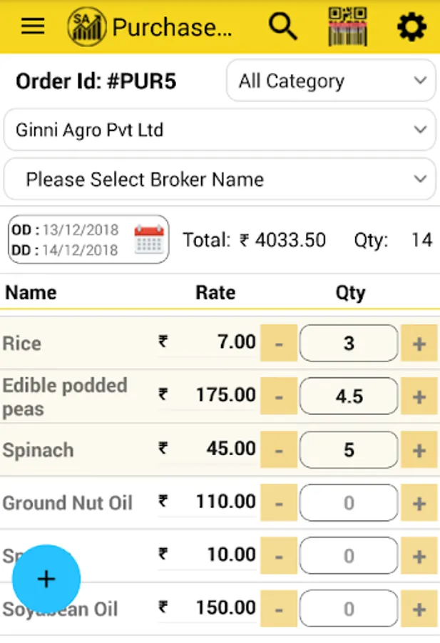 Purchase order with rate