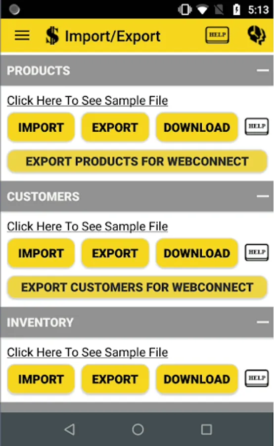 Inventory import export