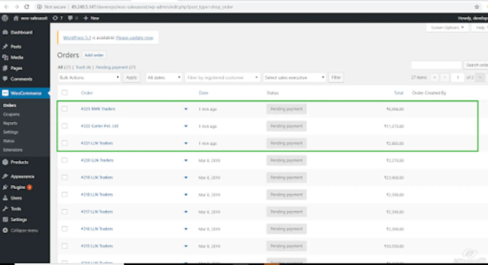 10. export order to back-end website.