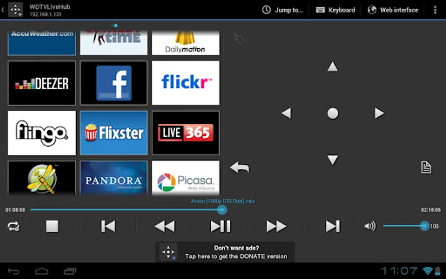 Control your WD TV® media player via Wi-Fi with your Android device using the physical buttons, the touchscreen, the gesture panel, or even shaking your device.