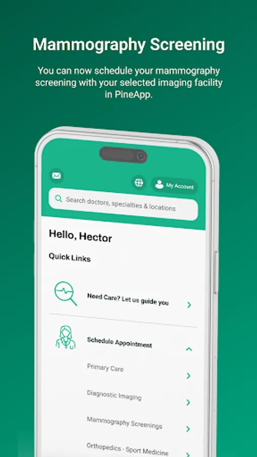The PineApp is revolutionizing the way you experience healthcare, putting you at the center and everything you need at your fingertips, keeping you connected to your healthcare everywhere you go. PineApp offers the following features to save you time, so you can focus on being healthy;