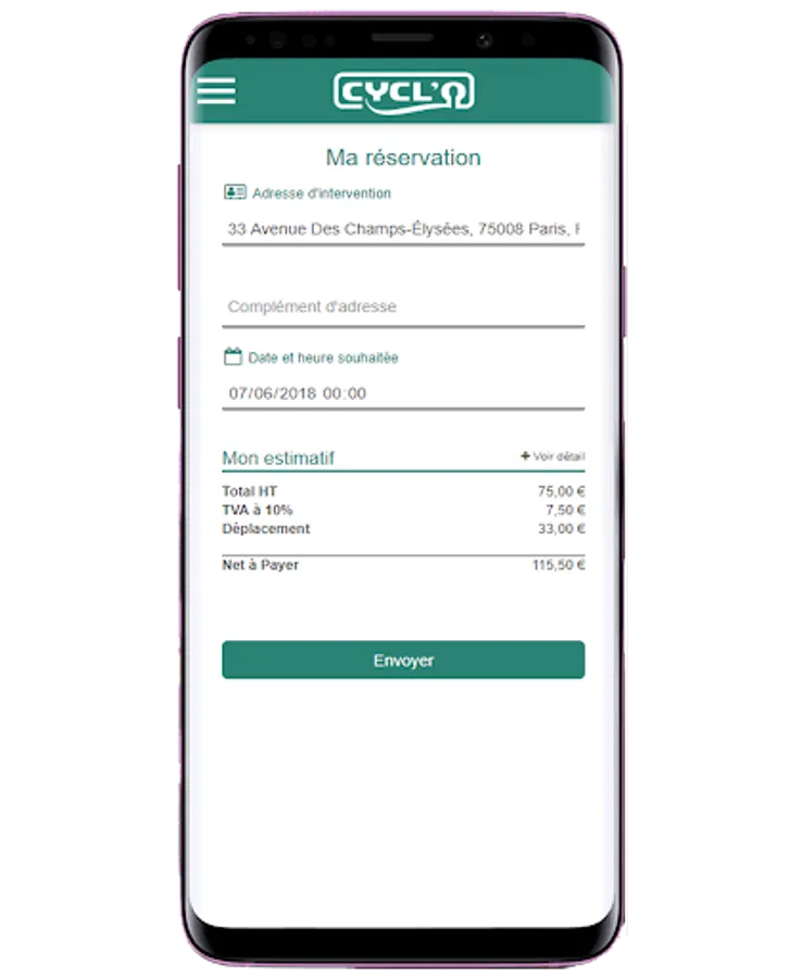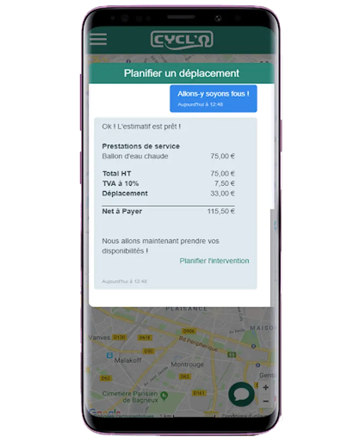"Cycl'O is the first fully automated application to control your specialists in plumbing and sanitation! An off-reactivity pair waiting for all of our teams on patented scooters and trailers Cycl'O (c)
