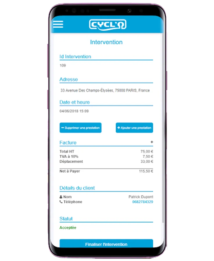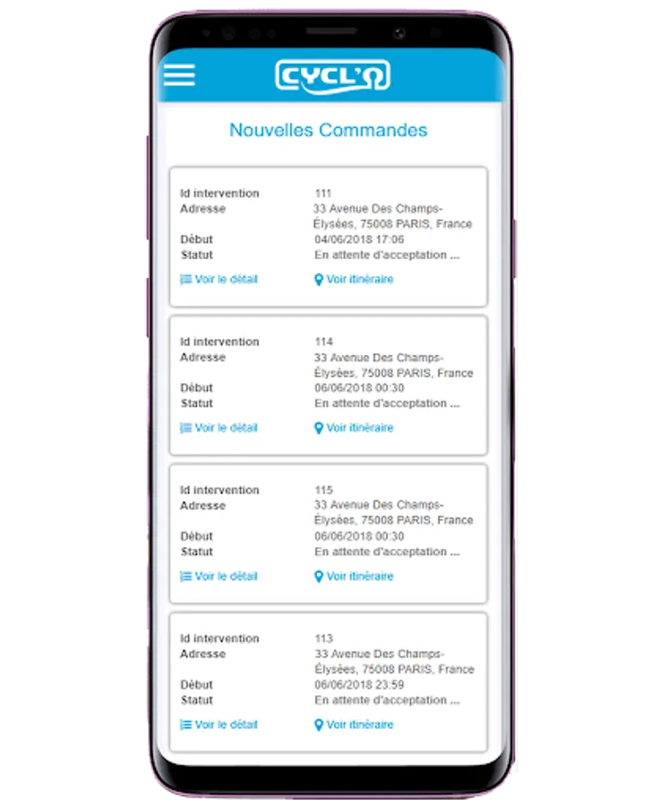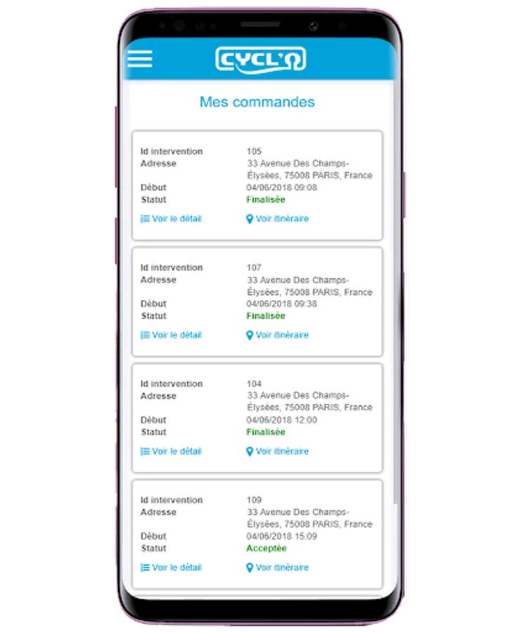 "Cycl'O is the first fully automated application to control your specialists in plumbing and sanitation! An off-reactivity pair waiting for all of our teams on patented scooters and trailers Cycl'O (c)
