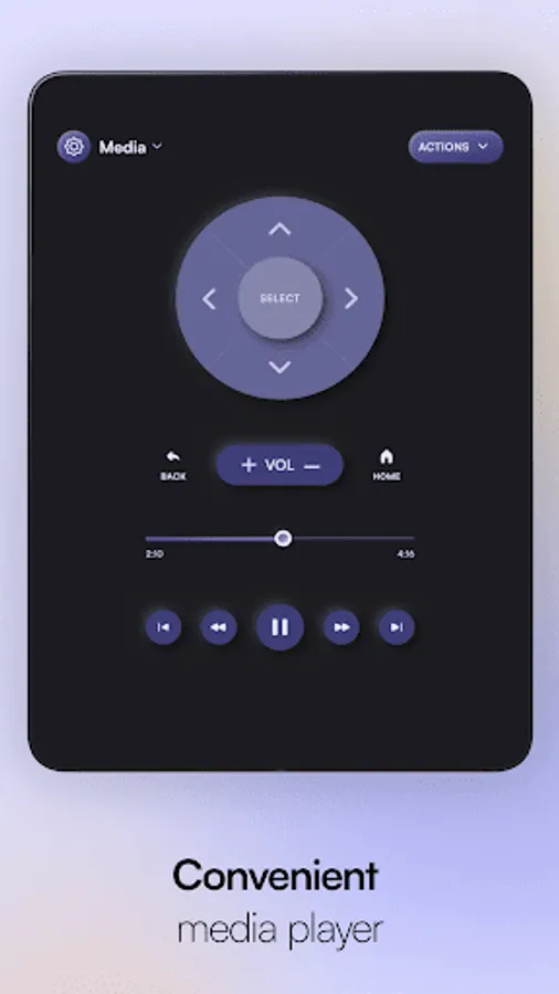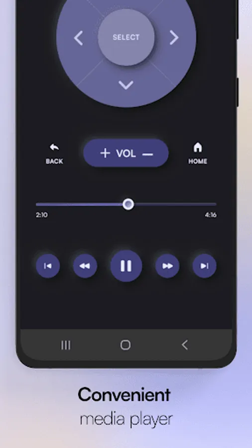 The main features of the remote control for the Samsung tv app: