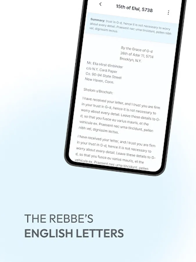 The Rebbe Responsa App is a revolutionary platform that compiles the Lubavitcher Rebbe's letters written originally in English. The English letters are unique in style and content. They explain profound and deep concepts in a plain and simple manner, understandable and practical even to the less affiliated.