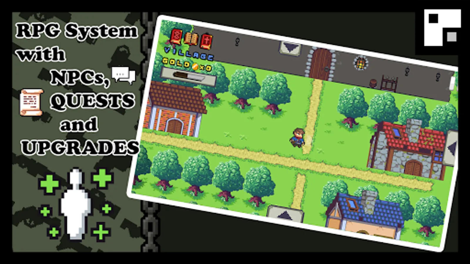 • RPG System with NPCs to interact, Quests and Upgrades;