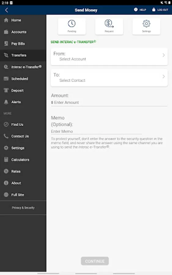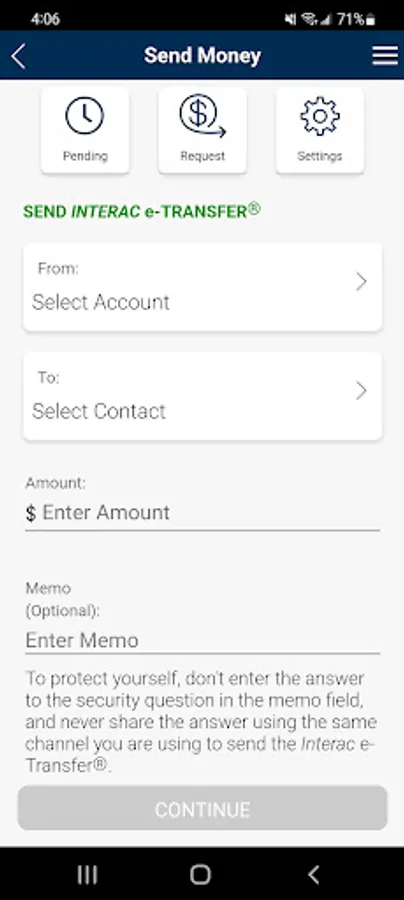 • Access to your phone contacts – Get the utmost in convenience by allowing our app to access your list of contacts, that way you can send an Interac e-Transfer® to someone on your contact list without manually setting them up as a recipient in mobile banking.