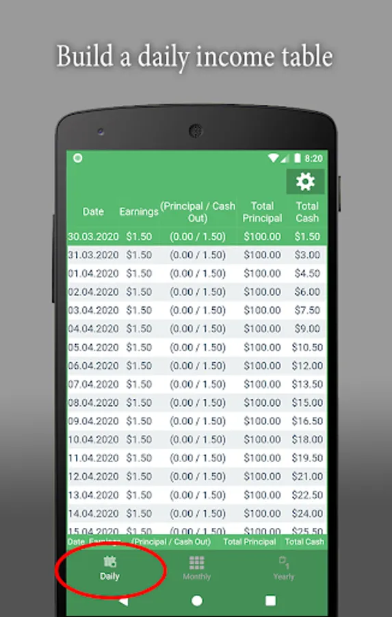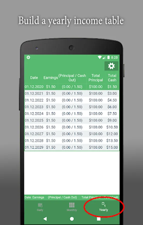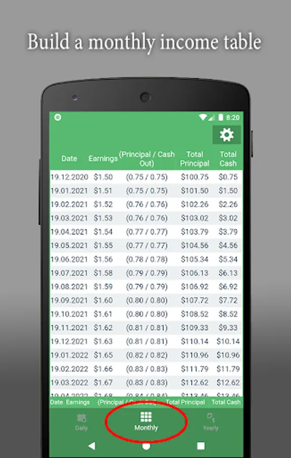 A simple application that calculates and builds a table with a forecast of return on investment with a daily, monthly or annual percentage.
