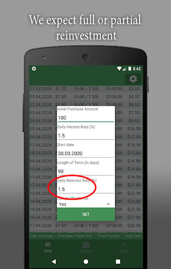 - it is possible to show the results of reinvesting a certain percentage of profit
