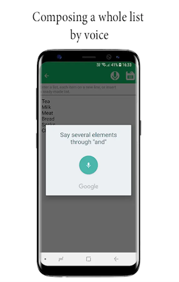 - make up the entire list with voice (pronounce the entire list, dividing the elements through "and" among themselves) or its individual elements