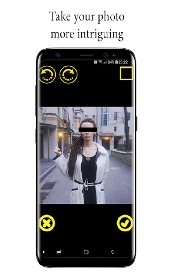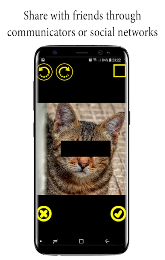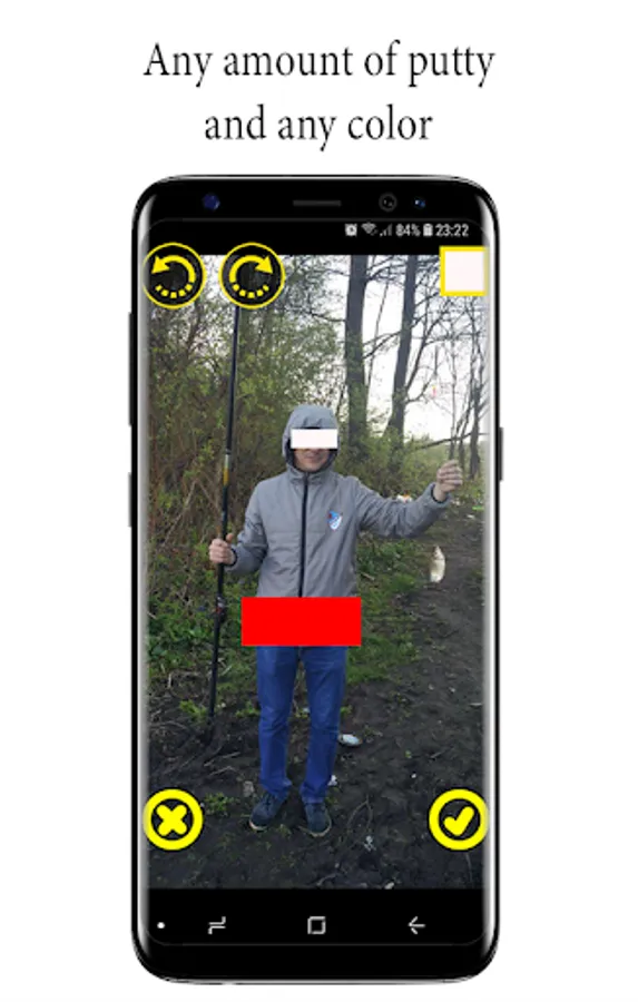 The application allows you to paint your eyes on the photos with a rectangle of any color.
