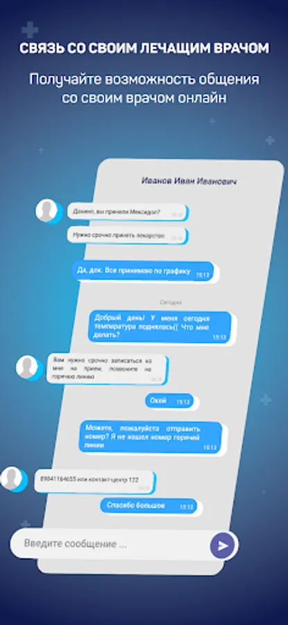 The ability to join exactly your clinic and get consultation communication with your doctor thanks to the built-in messenger.