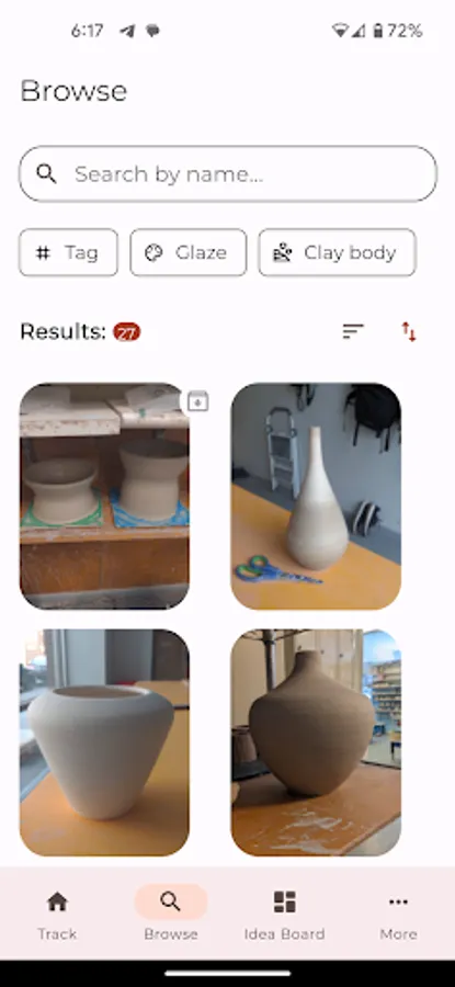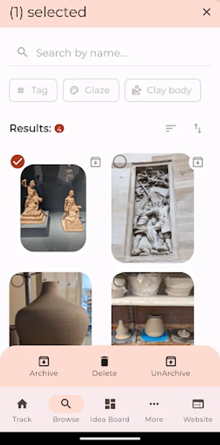 - Searching for works by: status, clay body, tags, notes, title, and glazes